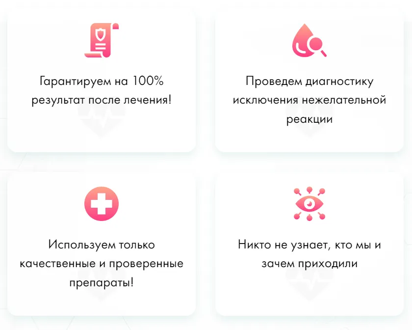 Независимо от того, где проходит терапия – дома или в стационаре, врачи позаботятся об удобстве и эмоциональном комфорте. Если состояние пациента позволяет отказаться от госпитализации, врачи будут приезжать к нему на дом для проведения процедур, оценки качества лечения и коррекции назначений.